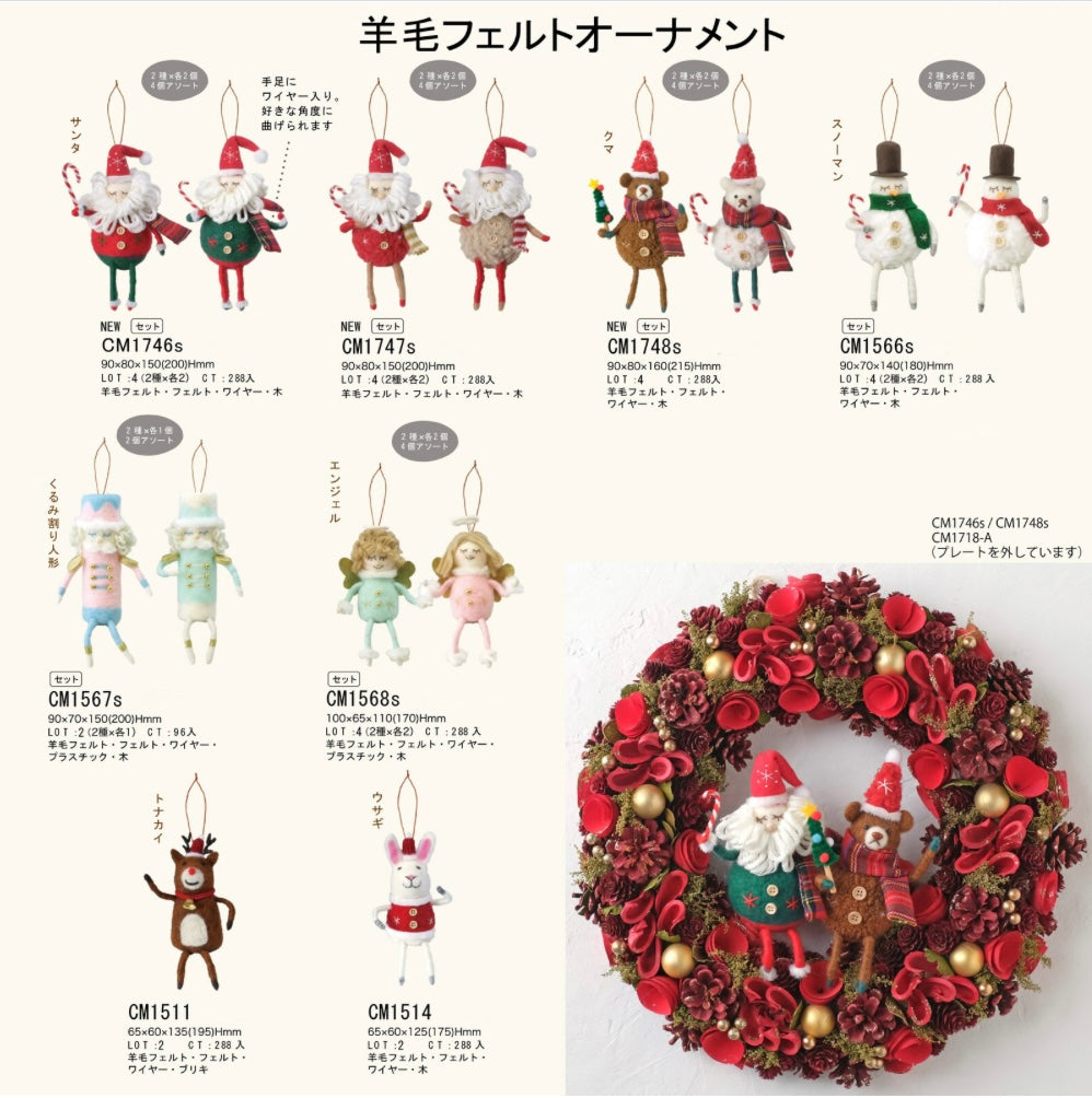 Add a touch of handmade warmth to your holidays with these adorable Japanese wool felt Christmas ornaments. Each piece is carefully crafted with soft felt and delightful details that bring festive characters to life — from jolly Santas and playful reindeer to sweet snowmen, angels, and bunnies.
