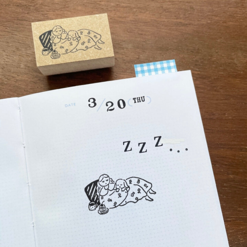 This is a stamp of Marle-chan dozing off in a doze while hugging a cat.